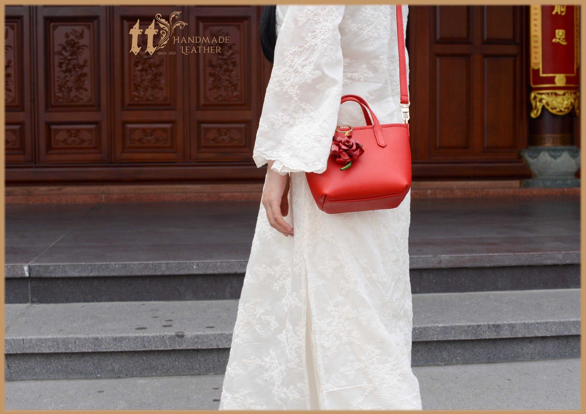 Túi được may tay bằng d.a b.ò thật, bên trong có lót d.a h.eo;