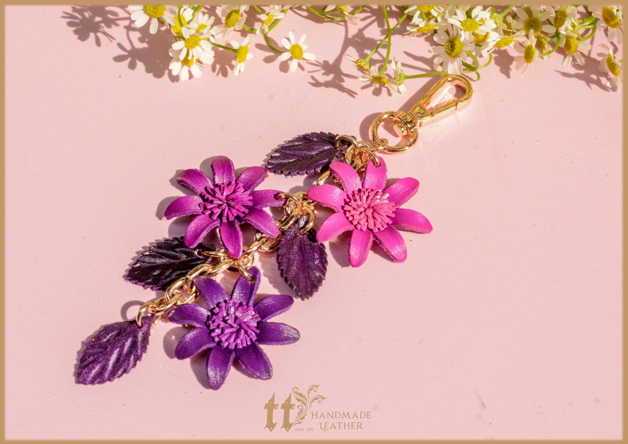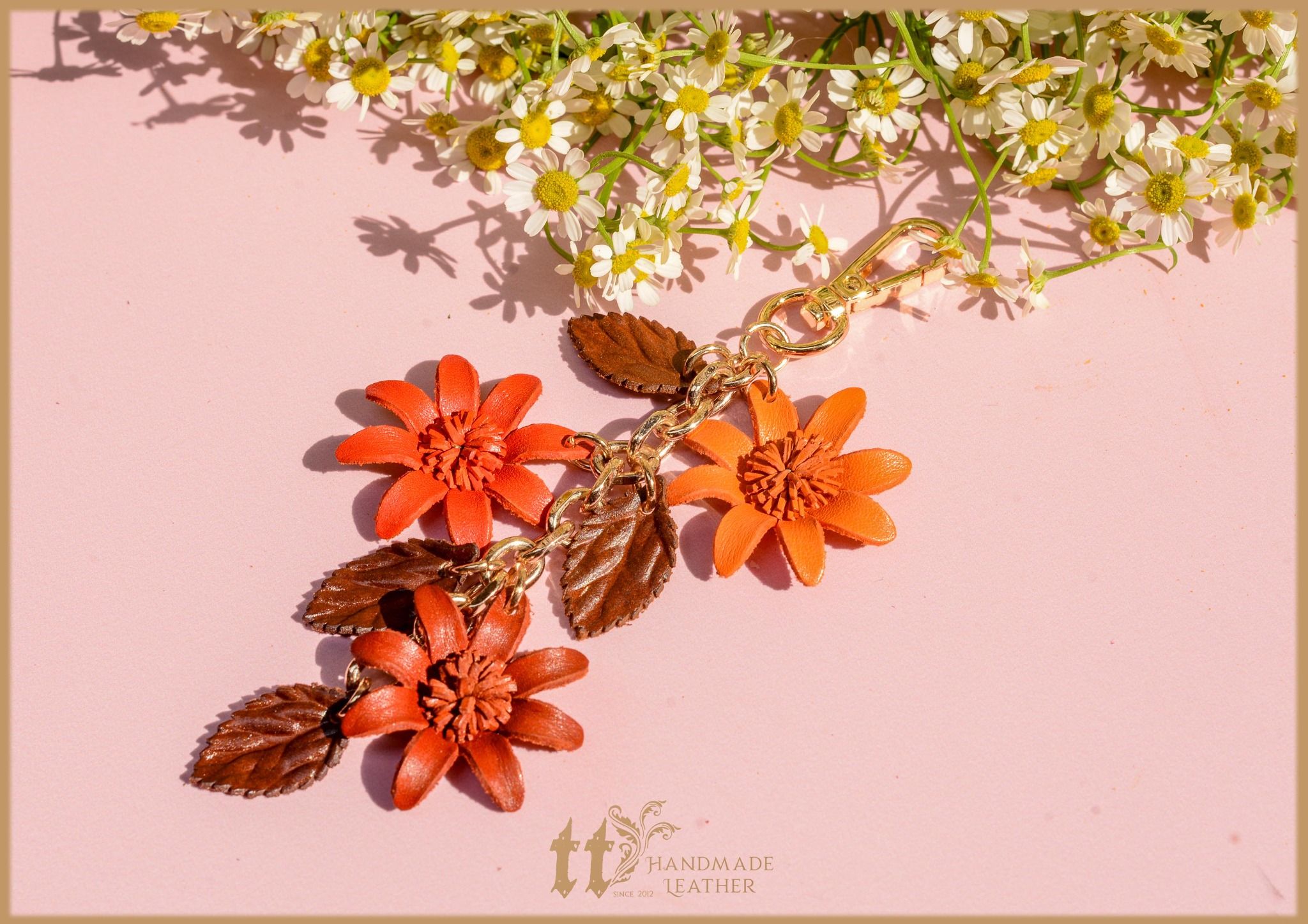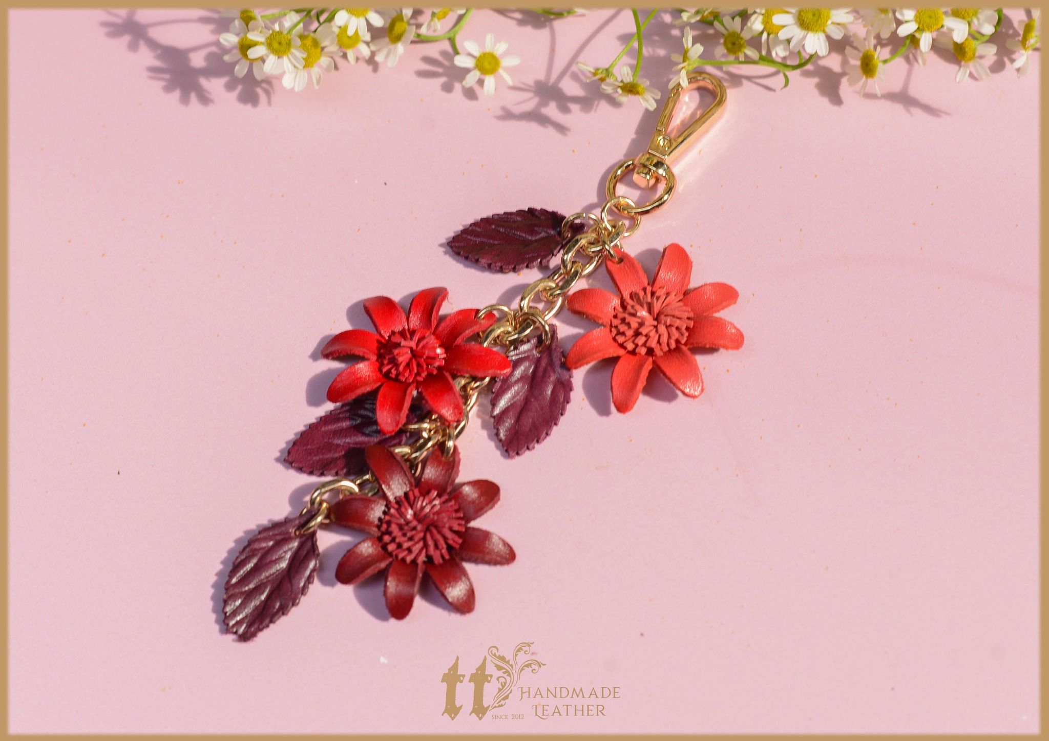 Charm hoa được làm thủ công bằng da bò thật