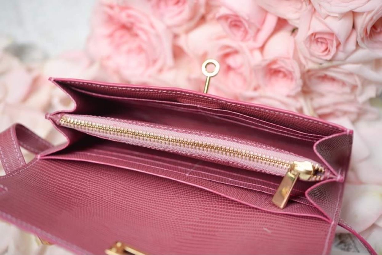 - Clutch có 2 ngăn lớn đựng được phone và rất nhiều tiền, 12 ngăn thẻ, 1 ngăn dây kéo và một ngăn dài sát vách trong cùng.