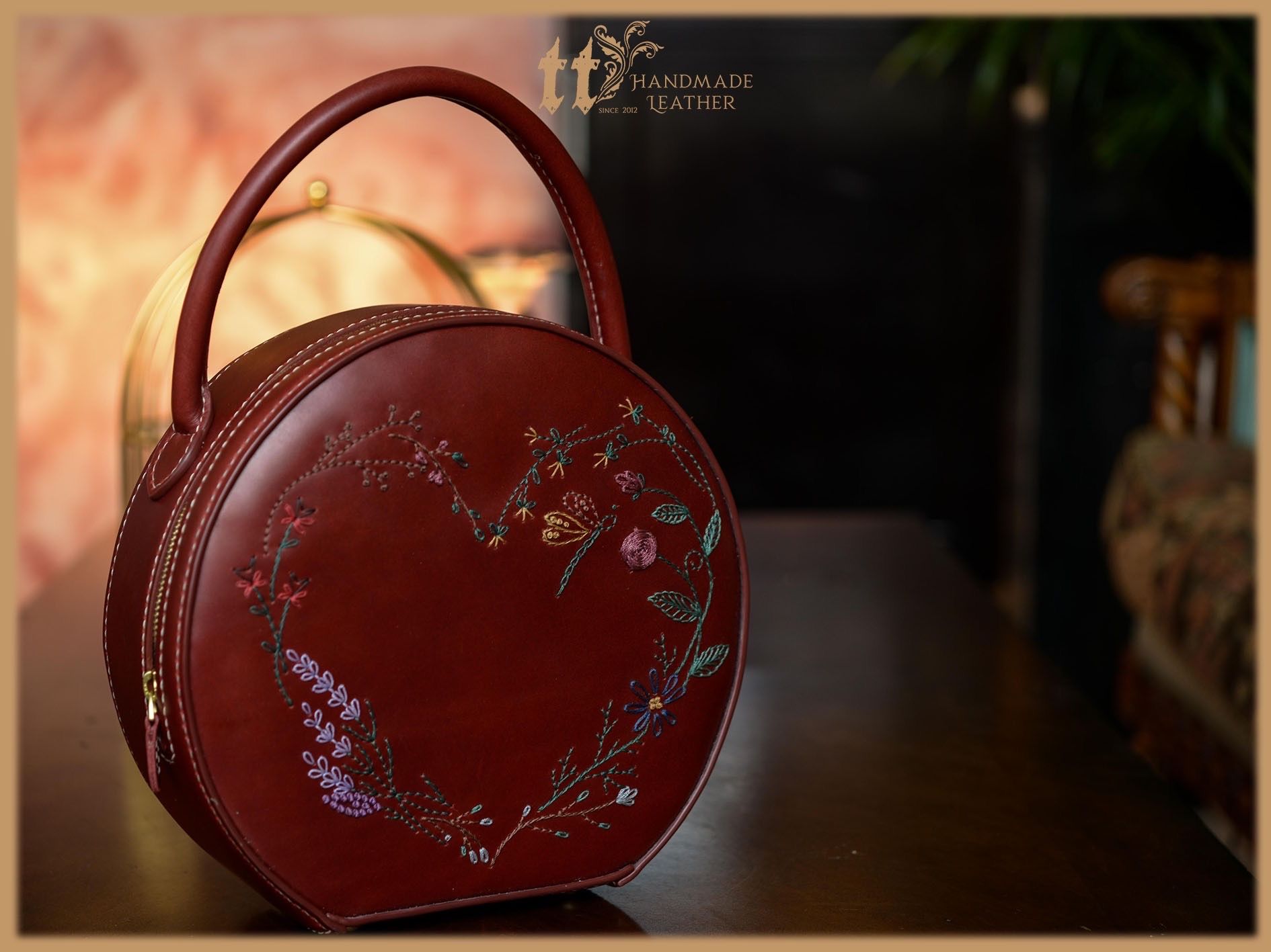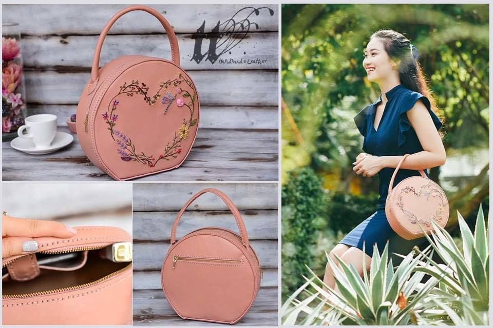 * Túi được may và thêu tay trên chất liệu da bò, bên trong có lót da heo