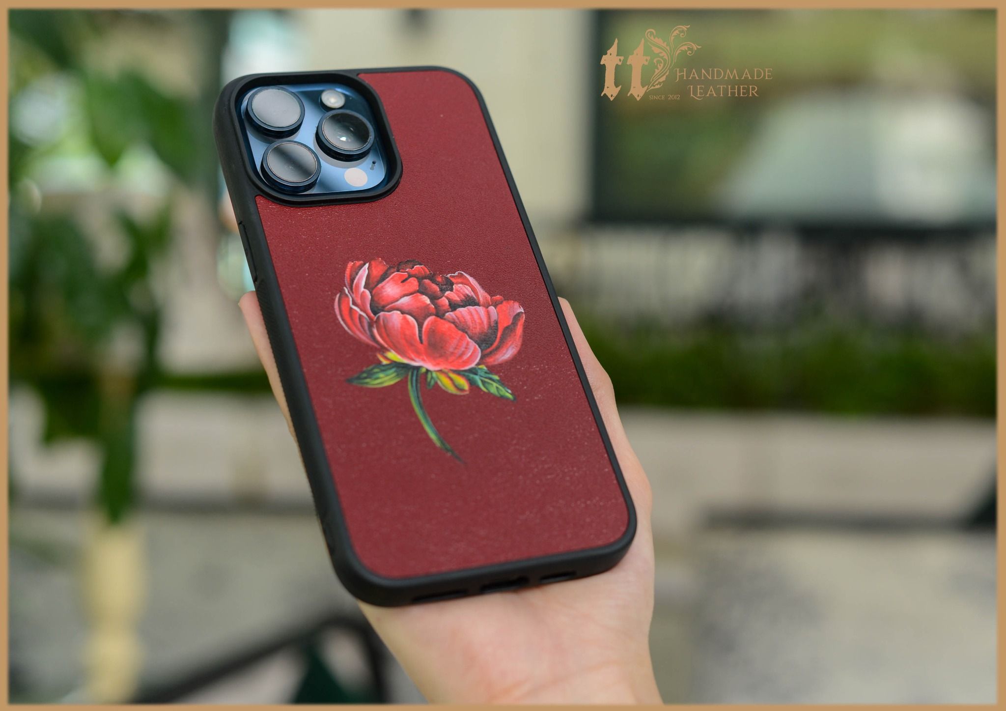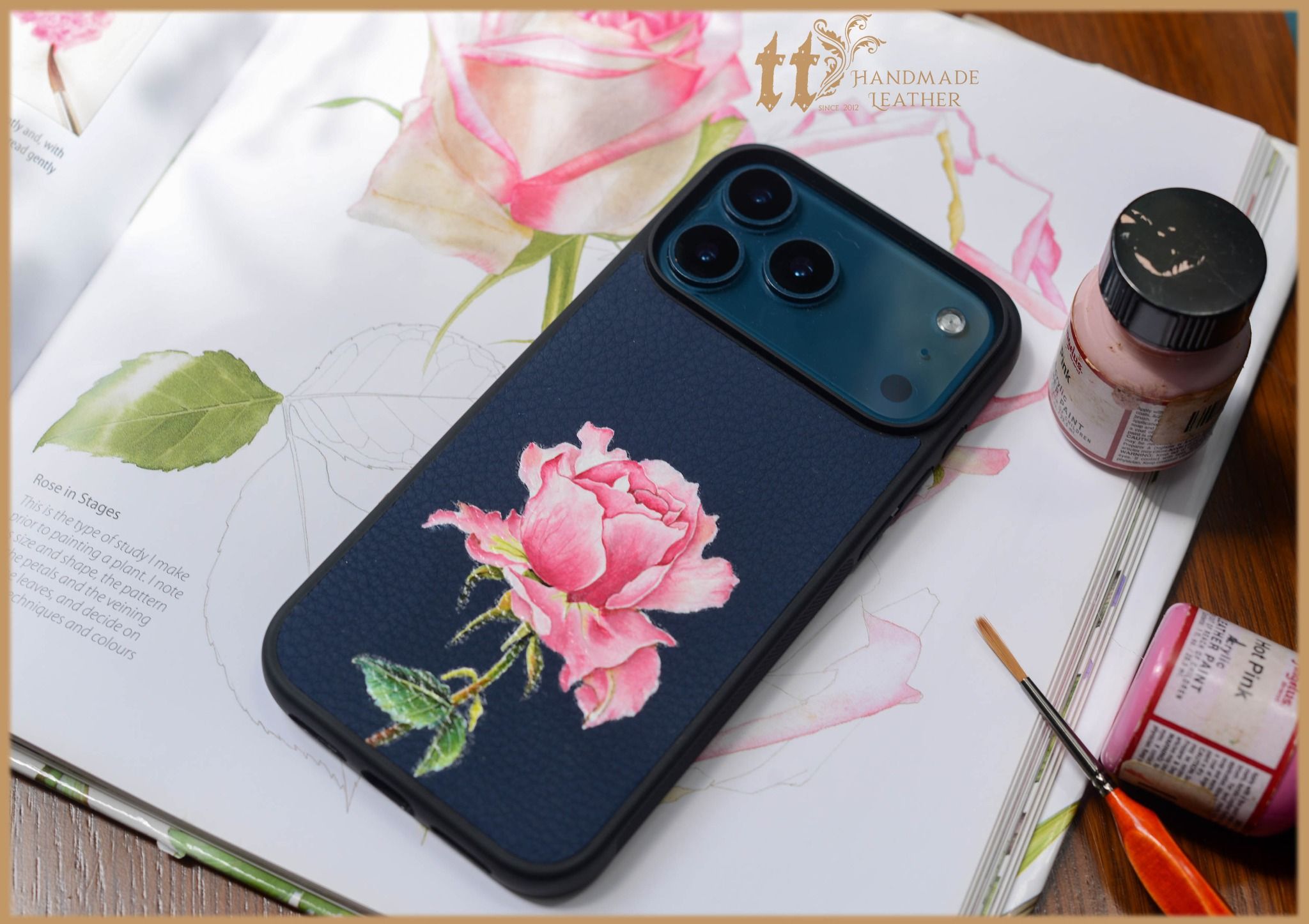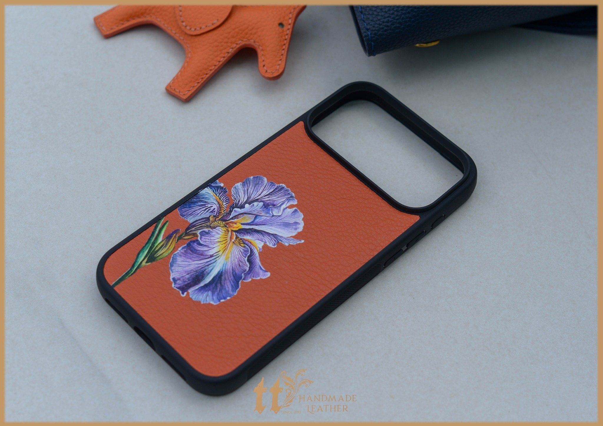 Ốp điện thoại viền nhựa dẻo được làm và vẽ thủ công trên chất liệu da bò cao cấp