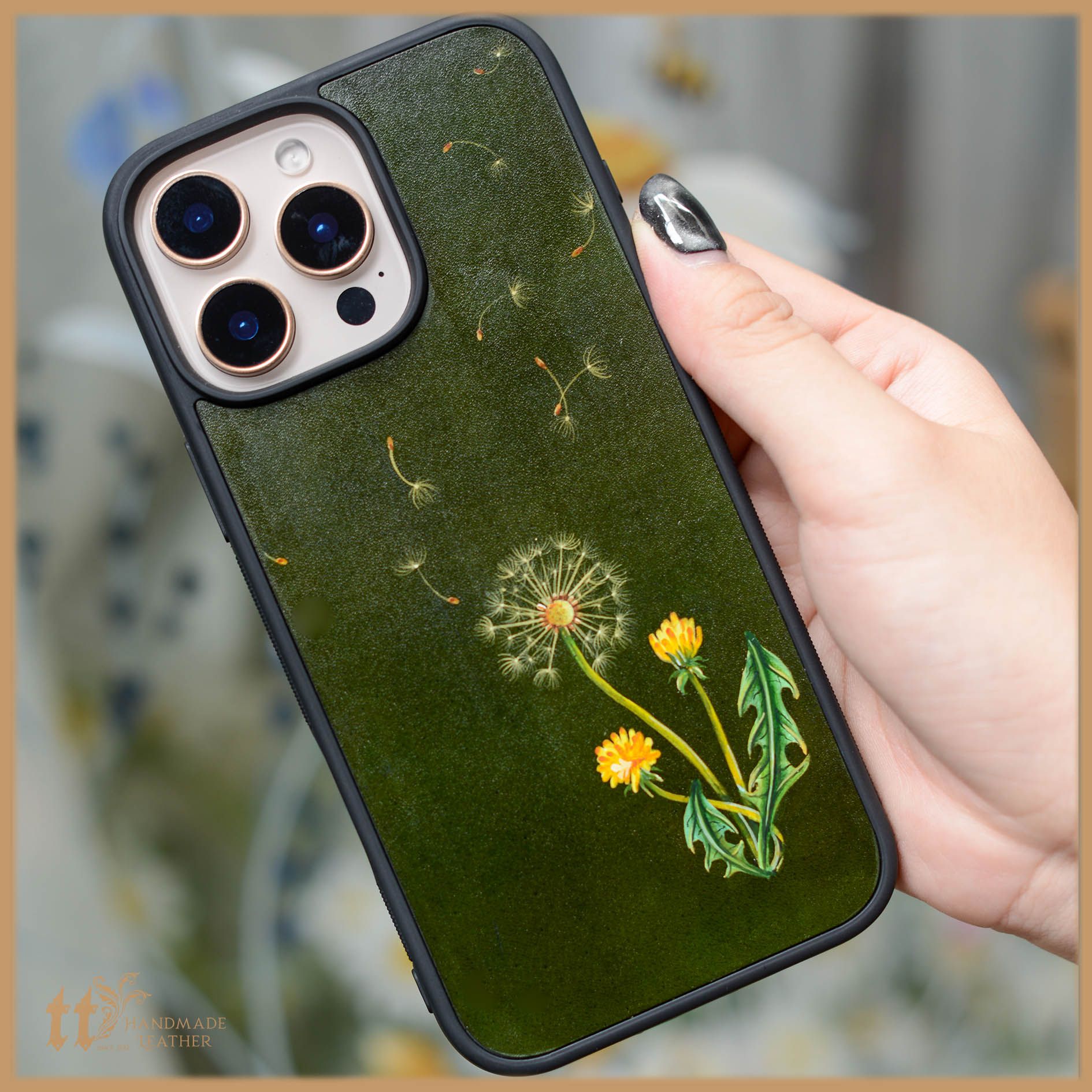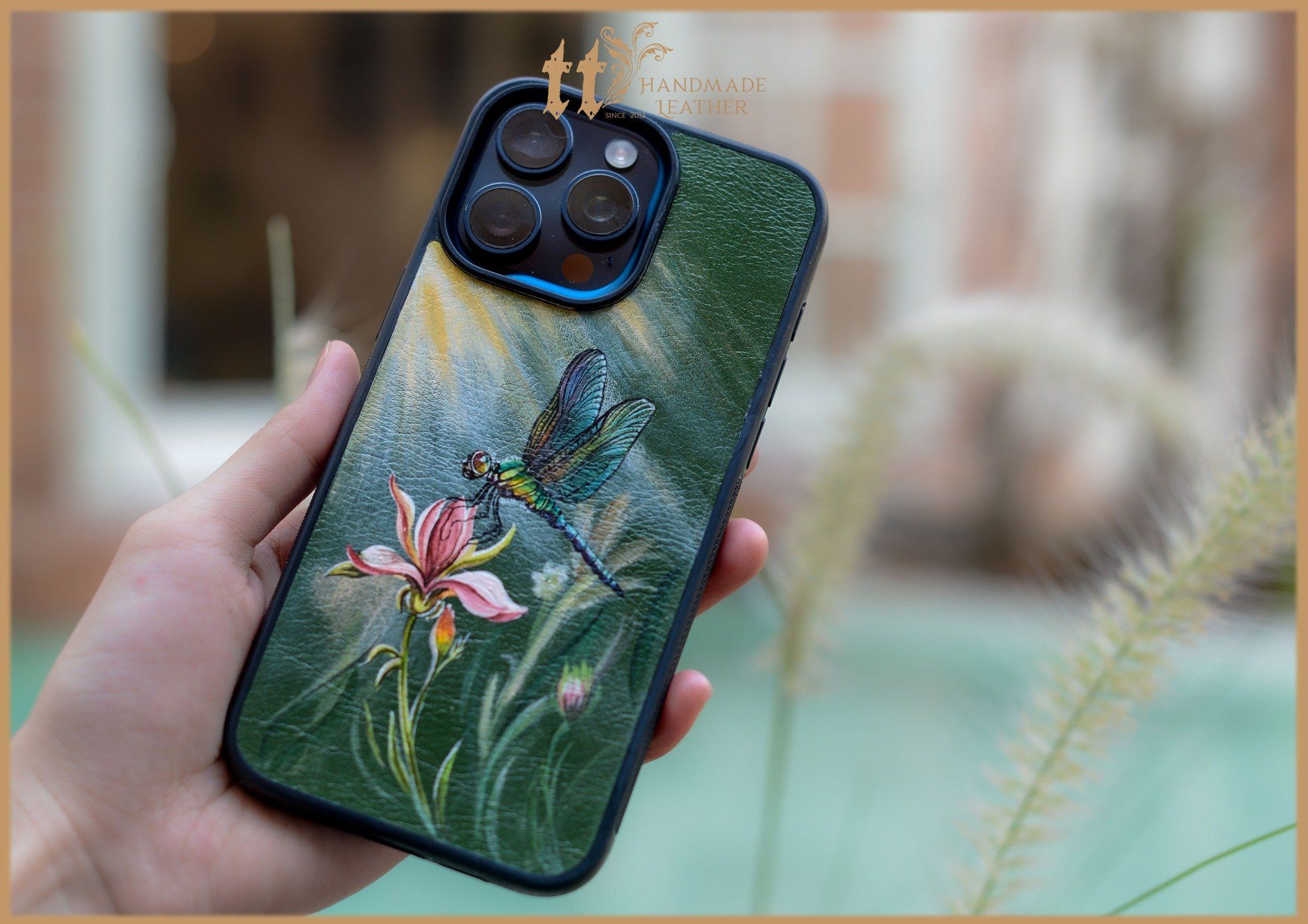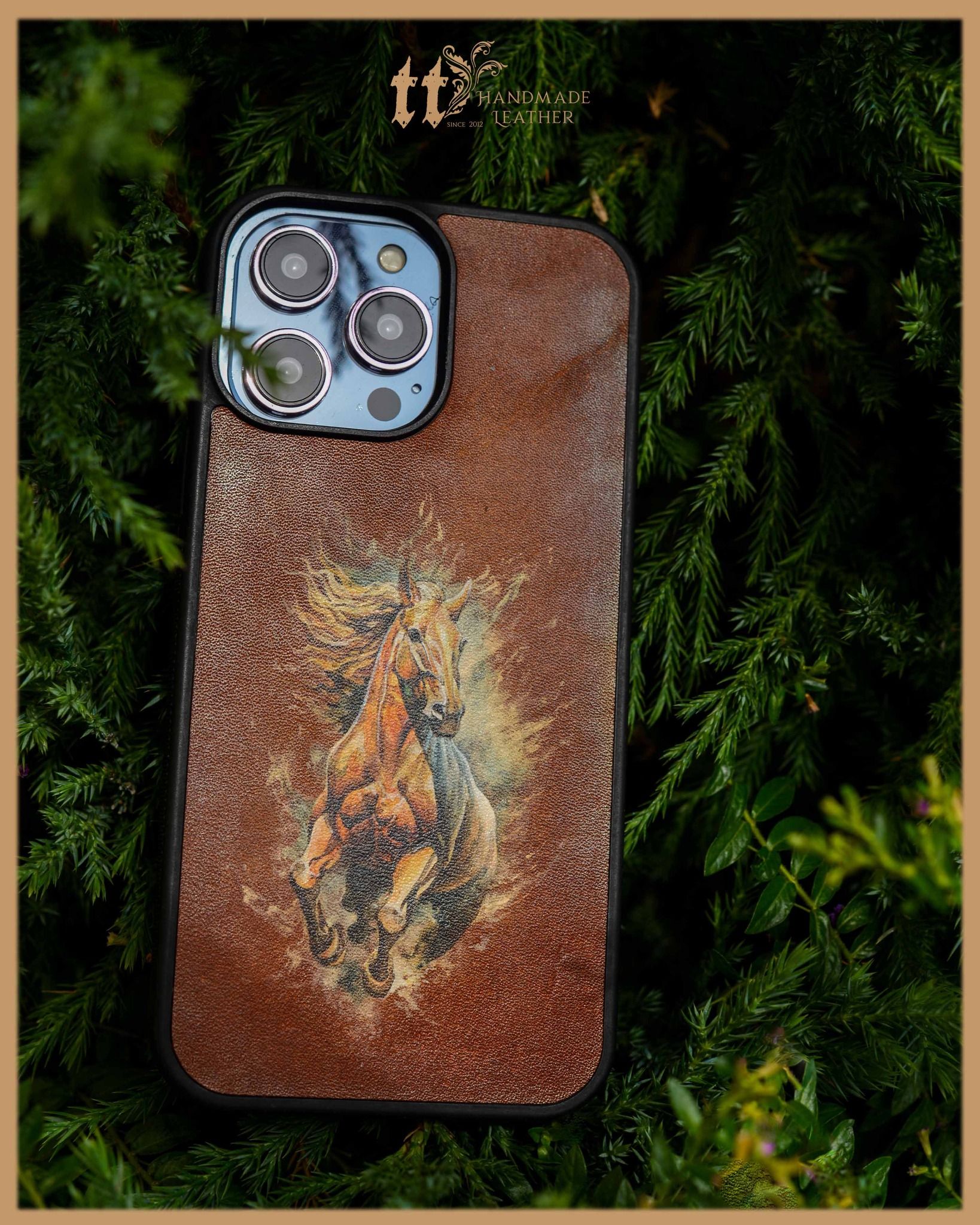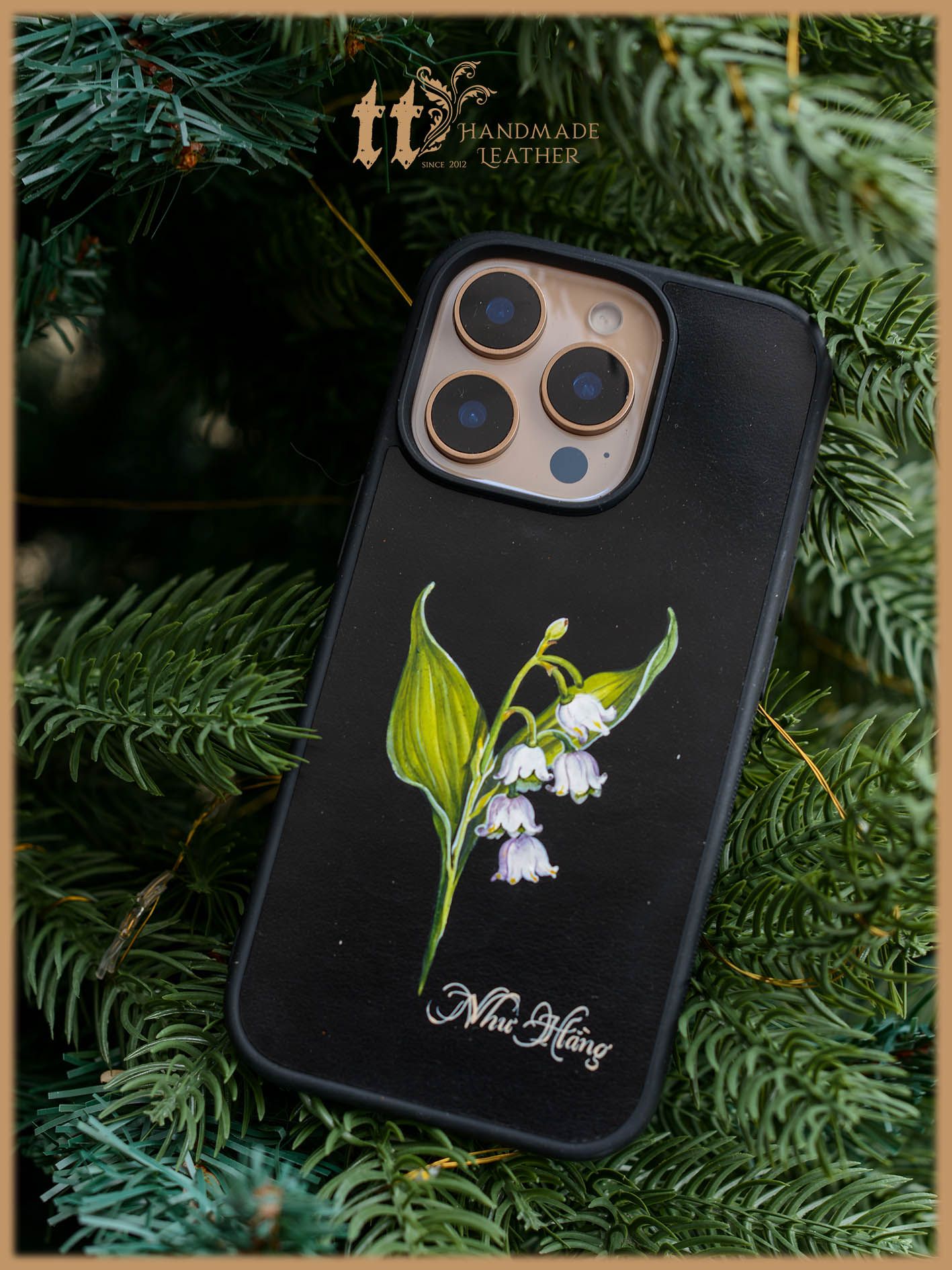 Ốp điện thoại viền nhựa dẻo được làm và vẽ thủ công trên chất liệu da bò cao cấp