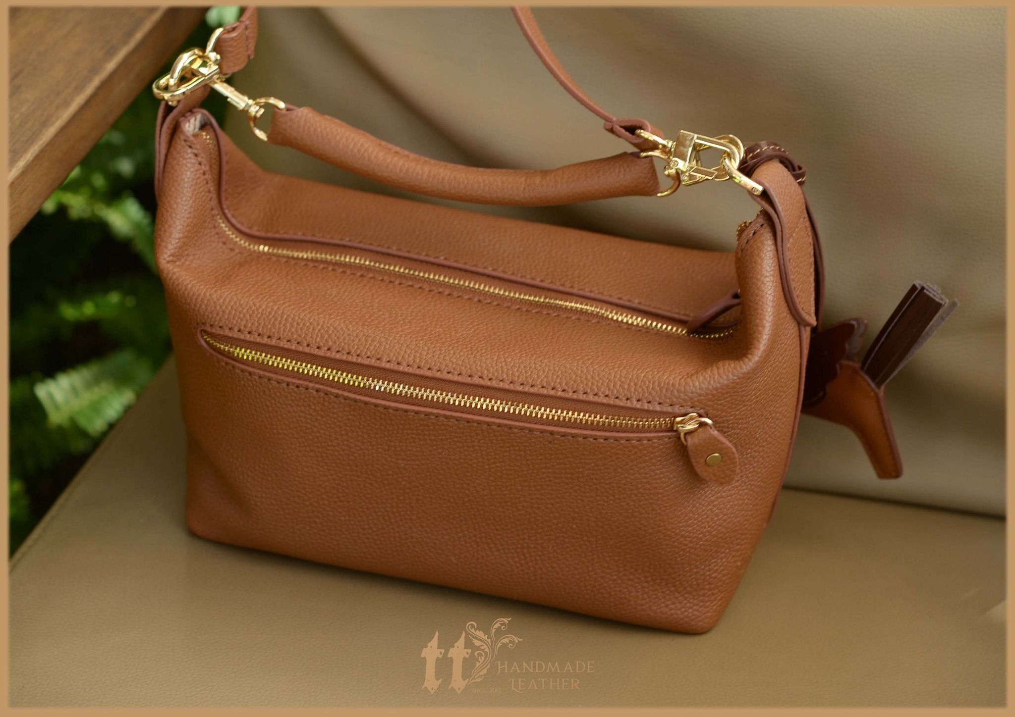 Túi được may tay hoàn toàn bằng d.a b.ò, bên trong có lót d.a h.e.o