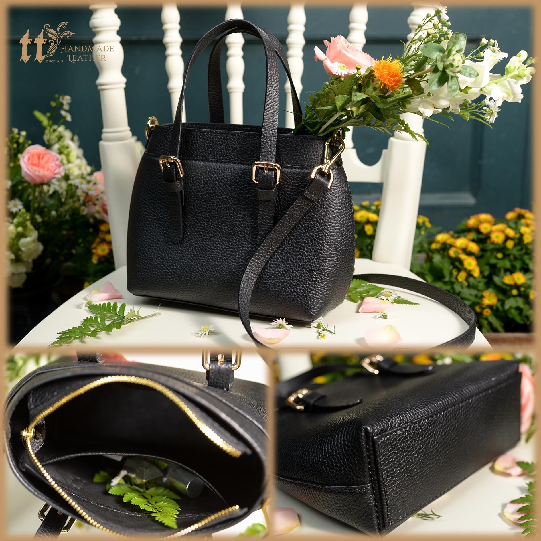 💯 Tất cả túi và ví TT đều được may tay trên da bò thật 100%, bên trong lót da heo mềm mại