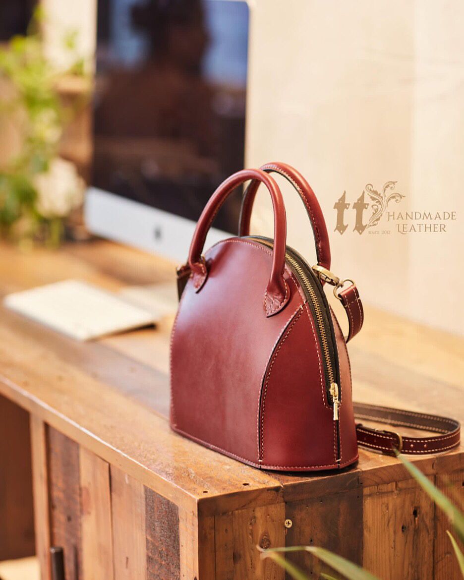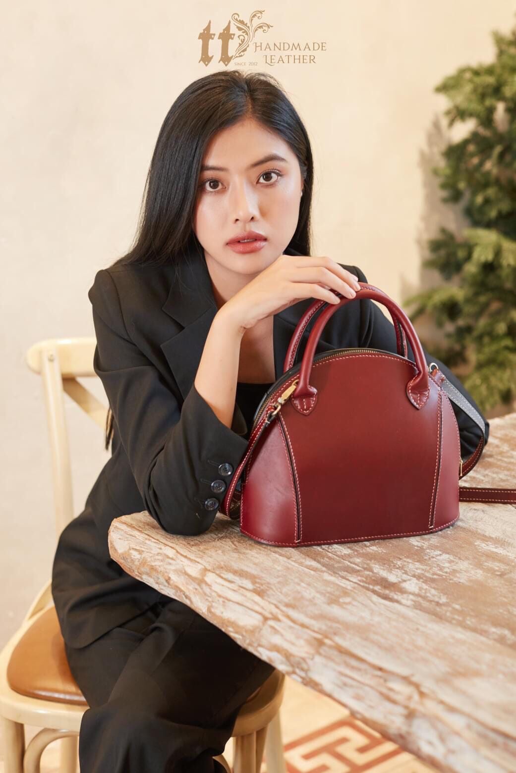 Túi sò vừa có quai xách để đi tiệc lẫn quai đeo khi đi làm, túi được may thủ công bằng da bò, bên trong lót thêm da heo mềm mại.