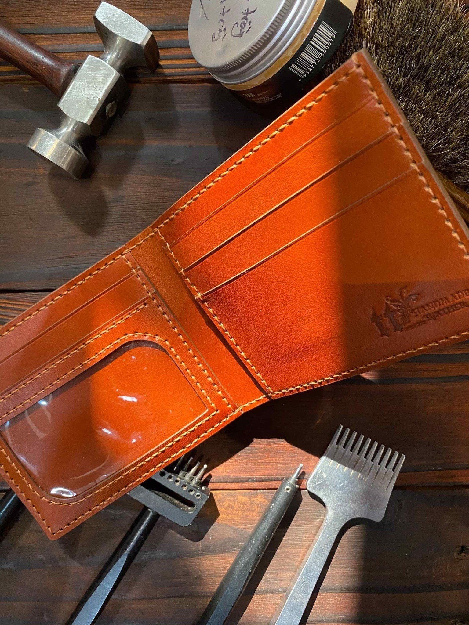 - Chất liệu da bò, may tay